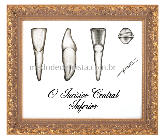 O incisivo lateral inferior da ilustração (lembrando que são desenhos baseados em dentes reais) estava totalmente hígido e sem qualquer desgaste incisal. Nem uma restauraçãozinha. Fico imaginando o motivo da extração… possivelmente por razões ortodônticas.